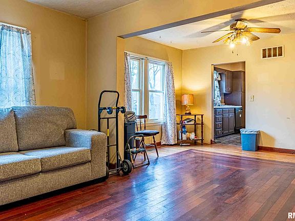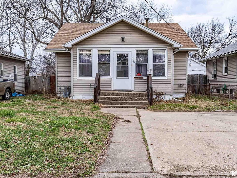 GREAT OPPORTUNITY! This 2-3 Bedroom, 2 Full bath home with a Fenced Yard also has a detached 2 stall Garage. Full basement is partially finished with a 24x12 Family Room, den/office (has closet), and a kitchenette! There are 2 additional off street parking spots in the front of the home. Living Room and Dining Room have hardwood flooring. Main Level bathroom has a handicap accessible walk-in shower. A few updates include: water heater 2021, Roof & gutters 2017, and vinyl siding in 2017. Home is in an estate and seller would like to sell in AS-IS condition. Property is easy to show and quick possession is possible. Come take your tour today!