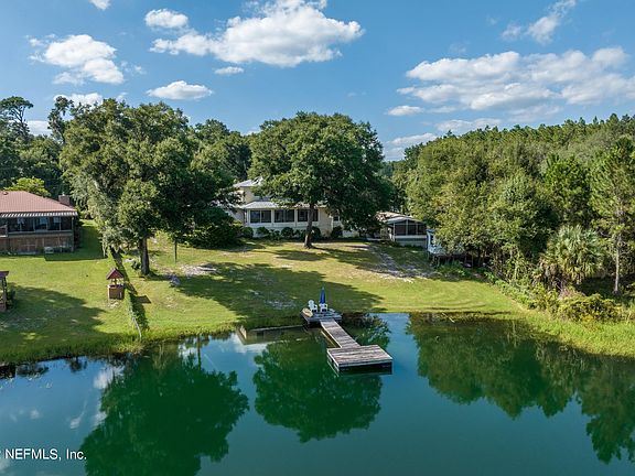 Spacious 2 story home on beautiful Saratoga Lake. Enjoy your morning coffee with stunning sunrises from your screened back porch. Floating dock to enjoy lounging, swimming, and water activities. Large master bedroom on main floor with lakeview. 4 bedrooms and 2 full Jack-n-Jill baths upstairs, and 2 half baths on main floor (1 is in garage). Large kitchen with tons of cabinets and island/bar with view of the lake. Double oven, new stainless fridge and dishwasher and glass cook top. French doors open to screened porch from kitchen, living room and master bedroom. Bonus room downstairs for office, gaming, theater, playroom, etc. Two 200amp electrical boxes, two HVAC systems. In addition to all of this, a 600 sf workshop with 400 sf attached covered carport and 400 sf screened porch . Roll top opens on both ends, separate electrical panel wired and ready to plug into a generator for home power back-up. This home has so much to offer!! Enjoy gatherings at the lake with family and friends, and beautiful peaceful mornings watching the changing colors of the sunrise. Short drive to St. Johns River public boat ramps. A must see!!