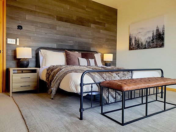 Down the hall for privacy, the primary bedroom includes an en suite bath and walk-in closet. Wake up to the awe-inspiring mountain views from the king sized bed.