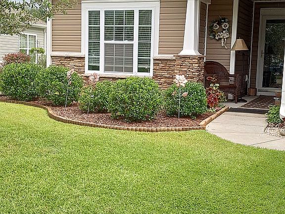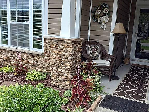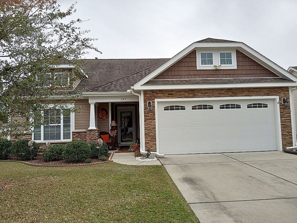 Craftsman style 3 bedroom, 2 bathroom ranch with dining room, breakfast area, screened porch, patio on a pond.