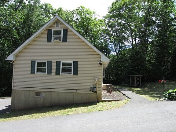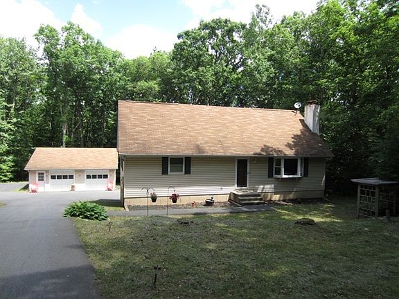 "TRADE UP TO THIS HOME AND WE WILL BUY YOURS" Spacious Cape Cod with 4 bedrooms, 2 bath, detached oversize 2 car garage with area for workshop, cozy living room with brick faced wood burning fireplace and there's a hook up for hot tub ,nice size modern kitchen, enclosed porch from which to enjoy the surrounding view of nature and finished basement with built in bar, cozy family room, rec room, storage and laundry. This property is well kept and not a lot to do to make it your home. Home is located near public school, bus stop and minutes away from Rte 80, 115. 209 and 715 See this home today and your search could be over.