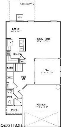 This two-story home includes 2.5 bathrooms and 3 bedrooms, each with a walk-in closet. The first floor features a spacious family room and flex space that can be used as a dining room. The kitchen, with granite countertops, opens to the living room. Upstairs, a free space leads into the spare bedrooms, a second bathroom, and a laundry room. The primary bedroom features a spacious walk-in closet as well as an en-suite bath with quartz countertops, and a separate tub and shower. The landscaped and sodded yard includes an irrigation system. *Exterior photo is a rendering and not an actual photo of subject property. Home is under construction.