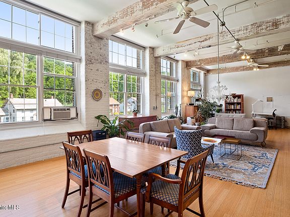 Welcome home to the Eclipse Mill, a live/work artist studio condominium. Treat yourself to all the comfort and style of this renovated loft! This 3rd floor river facing loft is move-in ready with a chef's kitchen, spacious work areas and an abundance of natural light. The open floor plan allows for plenty of opportunities to create a variety of studio work spaces. With bamboo and tile floors throughout, tons of closet storage, two well-appointed bathrooms, soaring 13 foot ceilings and an entire wall of windows, this studio is very special. The riverside primary bedroom ensuite includes a large walk-in shower and a deep soaking tub. Two additional rooms can serve as bedrooms, an office or yoga space. The kitchen is fully equipped with ample quartz counter space, an oversized stainless steel sink, gas stove and loads of cabinets. In-unit laundry area with w/d, secure basement storage, freight-size elevator and a riverside community garden space. Enjoy the first floor gallery to exhibit your work. Moments to MASS MoCA, Bright Ideas Brewing, downtown art galleries and restaurants.Open to artists through a pre-qualification process.