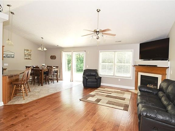 Must See - Center Grove. All brick ranch on .5 acre. Award winning custom floor in entry and living room (Hickory). Open concept living and kitchen/dining. Cathedral ceiling in living, Gourmet kitchen with custom white oak cabinets, tiled back splash, pantry, breakfast bar. Breakfast bar leads to backyard, concrete patio and soon to be fire pit. Mini barn on property, beautiful tree line with new park behind home. Walk in closets in bedrooms, custom trim,pocket doors are few of the extras. Kinetco water system in kitchen and master. Anderson windows.