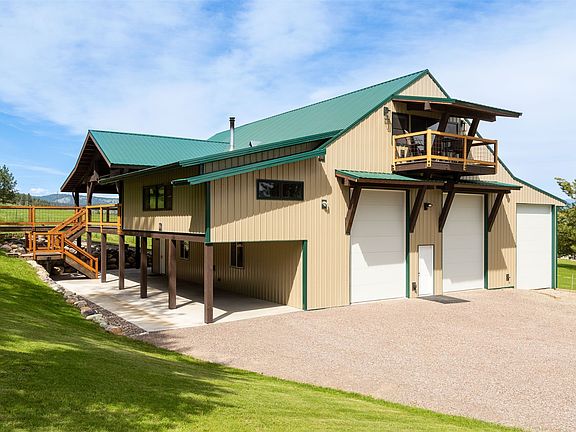 Incredibly maintained 5 acre property consisting of 2 homes, just outside of Kalispell. Main living area is a home/shop combination with a well organized oversized shop to fit all of your vehicles and toys plus have plenty more space to work. Efficient electric heat pump for heating and cooling. The main and upper living areas consist of 2 bedrooms and 4 baths including a master suite, kitchen, dining area, living room, and recreation room. High ceilings, high end finishes and an open layout with large front porch and decks to sit, relax, and enjoy the valley views. Guest house has 1 bedroom, living area, rec room and a 2 stall garage. Currently being used as month to month rental, and has previously been used as a short term vacation rental. Call Dan Slezak at 406-261-7869, Austin Zomer at 406-450-0365 or your real estate professional.