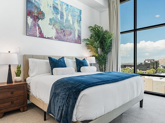Welcome to luxurious living in the heart of Salt Lake City! Be captivated by stunning views of the city skyline, the iconic Capitol building, and majestic mountains from your own home. Imagine waking up to snowfall or watching storms roll in, all while sipping coffee and taking in the breathtaking vistas. This modern and highly designed space is located one block from Salt Palace Convention Center and across the street from Delta Center, placing you in the center of the action, restaurants, and bars, yet offering a private, peaceful, and relaxing haven. Indulge in ultimate comfort and convenience with high-end Thermador appliances, plush king-size mattresses, smart technology blackout curtains, a cozy gas fireplace, and HD TVs in every room. The apartment includes a fully stocked kitchen with stainless steel appliances, a spacious, light-filled living room with large luxury leather couches, and a gas fireplace. Enjoy the balcony with outdoor seating offering downtown and mountain views. This luxury apartment includes complimentary parking for two cars in the secure lot underneath the complex. Ski storage is available for a small fee. Early check-in is guaranteed by 1 pm and late checkout is at 12:30 pm for a $30 fee. Housekeeping is available during your stay with options for daily, weekly, bi-monthly, and monthly cleanings depending on your needs. Additional concierge services such as shopping or errands are available upon request. Situated in the Downtown SLC neighborhood, this apartment is across the street from the Delta Center and just 11 minutes from SLC International Airport. It's one block from Salt Palace Convention Center and less than 40 minutes to all the ski resorts in SLC and Park City. Temple Square and City Creek Mall are less than five minutes away. Quiet hours are from 10 pm to 8 am. The minimum age requirement to book the apartment is 25 years. No smoking or vaping is allowed anywhere in the apartment or on complex property, with a minimum fine of $500 per occurrence. Pets are not allowed unless explicitly agreed upon, with a minimum $200 fine. Check-in time is 4 pm and check-out time is 10 am, with a $50 charge for late check-out in hourly increments. Lost key fob incurs a $150 fee and lost parking pass is $250. Damage due to bodily waste has a $100 minimum additional cleaning charge. Unapproved parties incur a minimum fine of $1000, and unregistered overnight guests incur a $100 fine per person. Resident amenities may be unavailable due to maintenance or other reasons at the discretion of apartment management. Do not contact the apartment complex management directly for any reason. The apartment features a luxury office desk and chair, providing a laptop-friendly workspace with high-speed Wi-Fi.