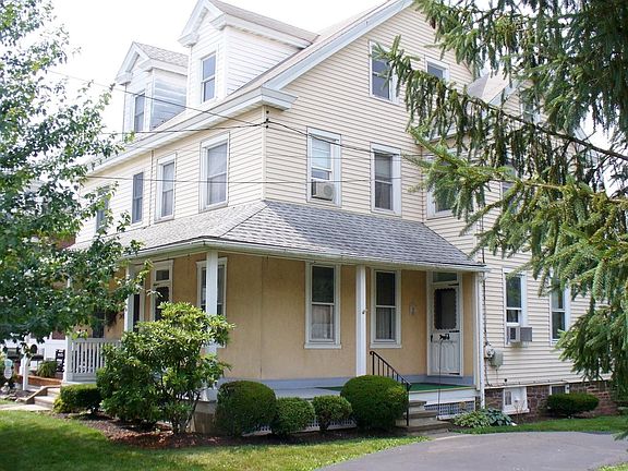 This large 1,680 SQF Twin home in Telford Borough is ten minutes from shopping, major roads and highways and one of the few homes on the street with its own private driveway and garage. Three bedrooms, one full and one half bath, large living room & dining room, eat in kitchen, 9ft ceilings, full basement with an outside bilco door entrance, newer heater, newer hot water heater along with a walk up third floor waiting to be finished to your taste that will add additional living space or an extra bedroom. Almost all of the interior doors in the house are the original solid wood stained doors that are complimented by the wood stained six-inch baseboard through out the house. Reveal the hardwood flooring under the existing carpet to bring out the charm of the home. Enjoy a large front wrap around porch as well as a convenient back patio with a nice yard complimented with a public park very close to the backyard to take advantage of the outdoors. Move right in and enjoy all of the advantages of home ownership in a great home in a great location.