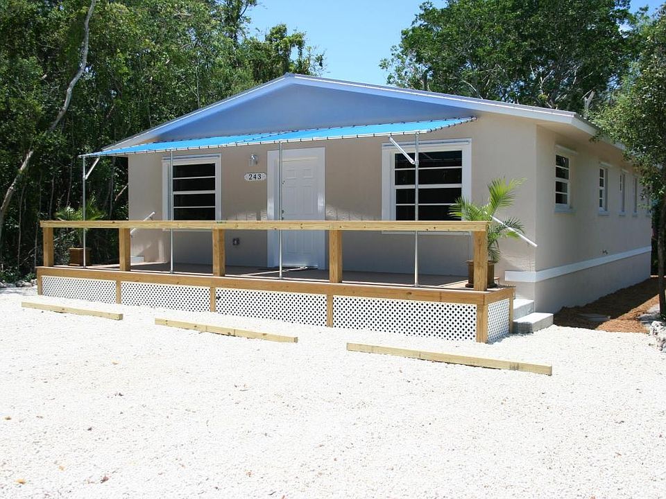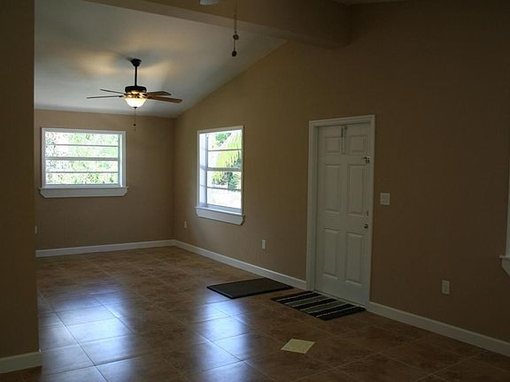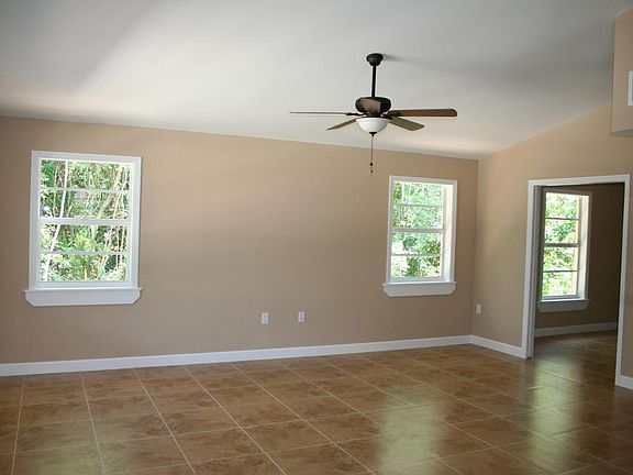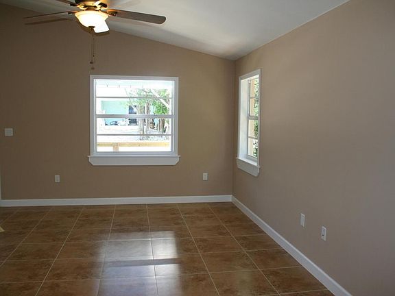 Brand new home with three bedrooms and two bathrooms (one with a tub) granite counter tops and stainless steel appliances. Metal roof with beautiful crown molding throughout this ground level home with tile floors. Washer and dryer included. Concrete interior wall. No wood trusses.