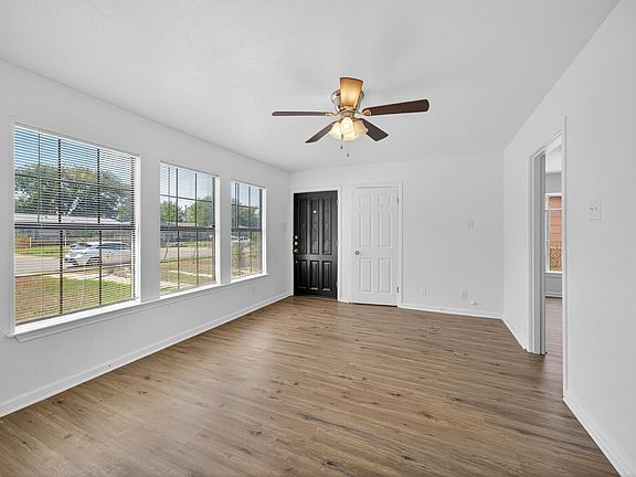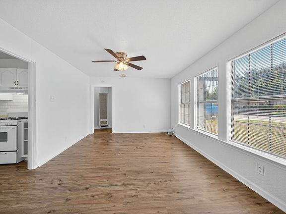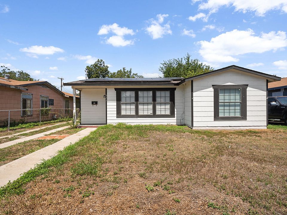 Charming 1-story home featuring 3 bedrooms with carpet and ceiling fans for comfort. The kitchen boasts white cabinets, matching appliances, and gas cooking for a modern, functional space. The bathroom offers a single vanity and a shower/tub combo. Enjoy outdoor living with a large covered patio, perfect for entertaining or relaxing. Quick access to Hwy 90, just 12 minutes to Southtown and Downtown, and a short drive to Kelly AFB. Functional floor plan with plenty of natural light throughout.