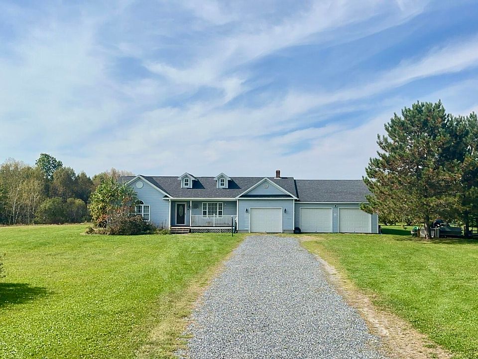 Rare find in the County! 1 Level, 3 Bedroom, newer home on over 16 acres- Right outside of town (just a 3 minutes drive!) in a quite neighborhood with a newly paved road! Built in 2000, this house has has recent upgrades like new roofing and new decking. This home has an open concept layout, opening up beautiful views on the east and west side. Enjoy watching the wildlife on your back deck with your morning coffee or casually walking the numerous trails in the backyard. A fenced in section of the backyard is conveniently available to keep your pets moving freely outdoors and safely. If ATVs and snowmobiles are your thing, this property has quick access to recreational trails. And storage isn't a problem for vehicles or toys with 3 garage spaces built on just recently! Schedule a showing today to see for yourself all that this property has to offer!