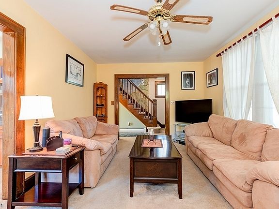 Large Brick Colonial with huge front porch and deck out back. Beautiful natural woodwork inside the home which brings you to an era of pride in craftsmanship. Living room has tons of natural light and a large wood burning fireplace. Which leads you into the formal dining room off the county kitchen that someone could make into a small eat in kitchen should they choose to. Large deck out back leads to the level back yard both are great for entertaining. Head either downstairs to the large basement that could easily be finished or just used for storage OR head upstairs to the 3 bedrooms and large main bath with tile floors. Then check out the 3rd floor and see this monster rec room/4th bedroom/ or walk up attic. This room is HUGE! Home is zoned for business use as well perfect for an attorney or accountant!