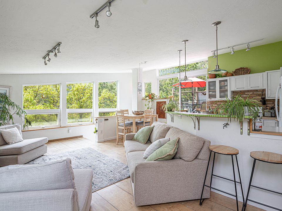 Edge-Inn is a beautiful sunshiny apartment for rent in The Glenn , Palmer Lake , Colorado. It has 1 bedroom , 1 bath (upgraded) with a dedicated office space, and gorgeous views down the front range of the mountains. It includes large insulated windows that bring the outdoors into your living space to make you feel a part of your natural surroundings. There are many things that make this an extraordinary place to live. The apartment is located at the base of Chautauqua Mtn. and a short walk to hiking and biking trails that go on forever. It is about 1/4 mile from restaurants, coffee shops, the Tri Lakes Center For The Arts, and of course the lake itself. Palmer Lake borders Douglas County Open Space that includes beautiful expansive miles of trails for hiking, biking, and horseback Riding. A private entrance to the apartment is from inside your garage. It includes a laundry, and ample storage. The garage rear door exits to a private patio with a gas fireplace and a landscaped back yard. You'll love soaking in the afternoon sunlight as you sit in the common area, work in the upgraded kitchen or as you use the office area. A large sliding door gives you access from this area to a deck that has a spiral staircase leading down to the backyard. The landlord does not live on site. Please make an appointment so you can take all of this in! Six month lease. Utilities paid. No smoking. Internet not included in rent.