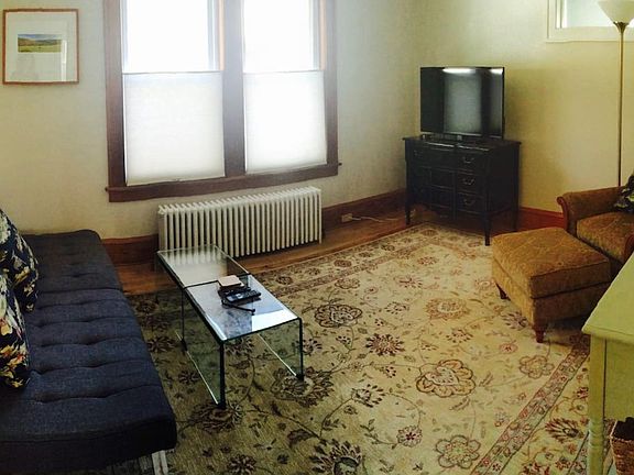 AVAILABLE AUGUST 18, 2022 FOR 10 MO TO ONE YEAR LEASE. ONE PARKING SPACE ONLY. IDEAL FOR ONE PERSON ONLY. Beautiful fully furnished 1 BR apt in a restored 1921 craftsman house. Brand new private porch. Many custom built ins. Clean, quiet and cozy, an ideal place for a visiting professor or business person. Internet, most heat and electricity and monthly cleaning service included. Off-street parking, secure bicycle storage with easy access to bike path & many other perks. 5-minute drive to Burlington. The space: Beautifully restored small one-bedroom, one-bath apartment on the ground floor of renovated craftsman-style house built in 1921. There is a large kitchen with stainless appliances (including a dishwasher); an equally-sized living room with a 40" flat-screen TV, a window-lined bedroom looking out on the large backyard with new pine floors; and an adjoining bathroom which includes a new glass-enclosed shower and porcelain-tile floors. A custom-built closet was recently installed in the bedroom nook acting as a privacy wall between the bed and the bathroom entrance. Original maple & pine floors are in the living room. Clothes washer and dryer are located in the basement. Off-street parking and secure bicycle storage. Access: Apartment is accessed by a side-entry, backyard and the basement which contains a full-sized washer and a smaller heat-pump dryer (for energy efficiency). Other things to note: I purchased the house in 2015 and the interior is now totally refurbished/updated. Amenities: Wifi Kitchen Free parking on premises Air conditioning Large backyard with veggie and fruit gardens House Rules: Ideal for one person Not suitable for children and infants No smoking No pets Owner pays for high-speed internet*, cleaning service, water and trash. Renter pays for electricity and heating. There is only ONE off-street parking spot. IDEAL FOR ONE PERSON.