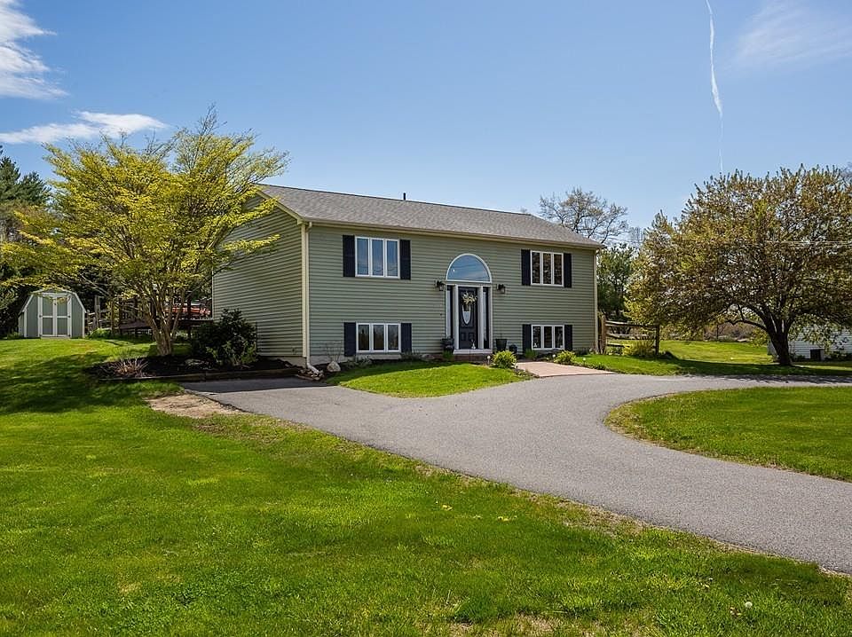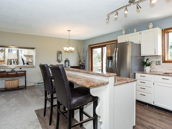 You are welcomed into a home with sun splashed spaces for entertaining, stunning country views, beautiful sunsets and a convenient circular driveway. The updated kitchen with granite counter tops and stainless steel appliances provides an open floor plan to the dining and living room area. Many updates include kitchen cabinets, flooring, bathroom with ceramic tiling, toilet and vanity, freshly painted walls and new carpeting throughout. Bedrooms are privately tucked away. Lower level includes a large bedroom and sitting area or whatever you please. Its ready and waiting for its new family, turn key!