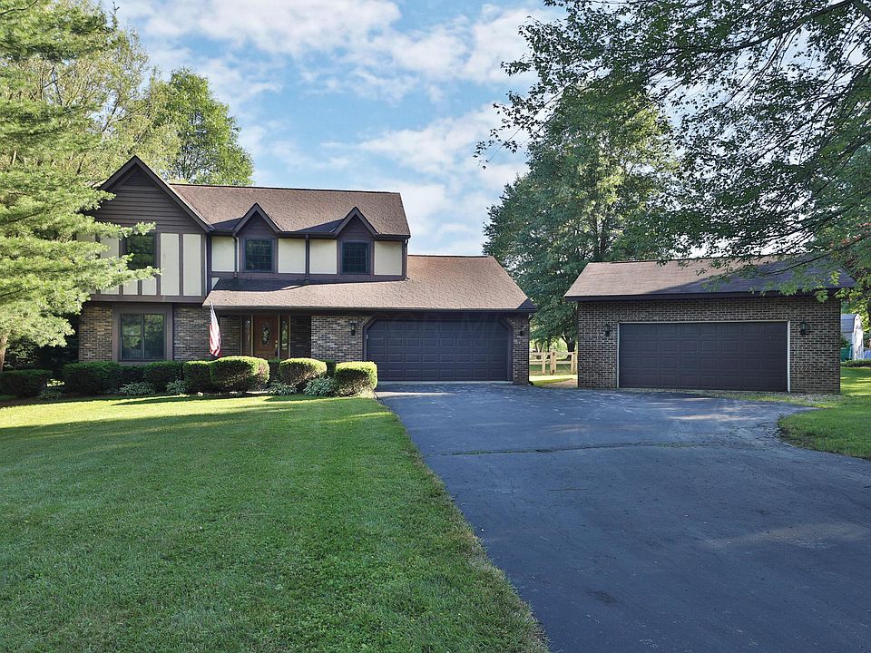 Tucked into a neighborhood on the outskirts of town lies this serene 2 story Tudor on 1.78 lush acres. At the end of a long drive, the 4 bedroom home has 2.5 updated bathrooms (2022), new H2O Heater (2024), newer stainless steel appliances (2021) & HVAC(2020). Storage galore between the multiple walk-in closets in the primary suite, built-in closet system in a converted bedroom, & built-in shelving in the basement. In addition to a large 2 car attached garage, there is a 3+ car detached garage, and a 1120 sq ft pole barn (6 car) with storage loft above; as well as 2 sheds in the rear of the property. The large deck overlooking the fenced backyard make this the perfect place for entertaining. See this lovingly cared for home before it's gone!
