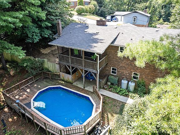 Welcome to 243 Wood Lily, a charming home nestled in an established neighborhood just around the corner from downtown Canton, and within a short drive of both Asheville and Waynesville. This home, situated on a wooded lot stretching from street to street, offers a low maintenance setting with easy access to amenities. Enjoy the peace of your personal oasis, featuring a back porch overlooking an above-ground pool, all set against a backdrop of lush trees. A fenced-in area provides the perfect space for pets. Step inside to discover a cozy den, accented with a stone gas-burning fireplace, a combined dining/living room, and a multipurpose room in the basement. Additional storage or parking is available in the garage. Whether you're a first-time homebuyer or looking to downsize, this delightful brick rancher is a must see.