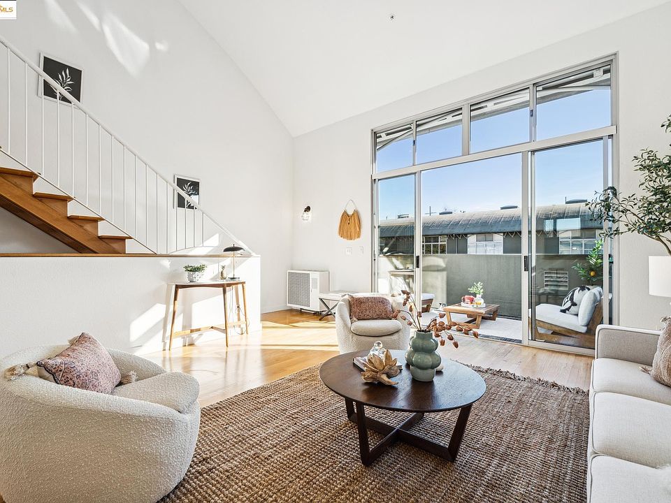 Discover unmatched versatility in this spacious tri-level loft at Redwood Tree Studios. Featuring one bright bedroom, two baths, and an expansive ground-level flex area perfect for work or studio space, this home is a creative haven. The ground-level live/work space includes a private landscaped patio, and optional office separate from the living area for added flexibility. The main level boasts vaulted ceilings, warm hardwood floors, a chef's kitchen with banquet, and a large balcony, ideal for entertaining. Upstairs, find an airy loft bedroom with skylight. Located near Berkeley's best cafes, shops, and recreation, Unit D is the perfect home for professionals and loft enthusiasts seeking style, comfort, and functionality. A special property not to be missed!