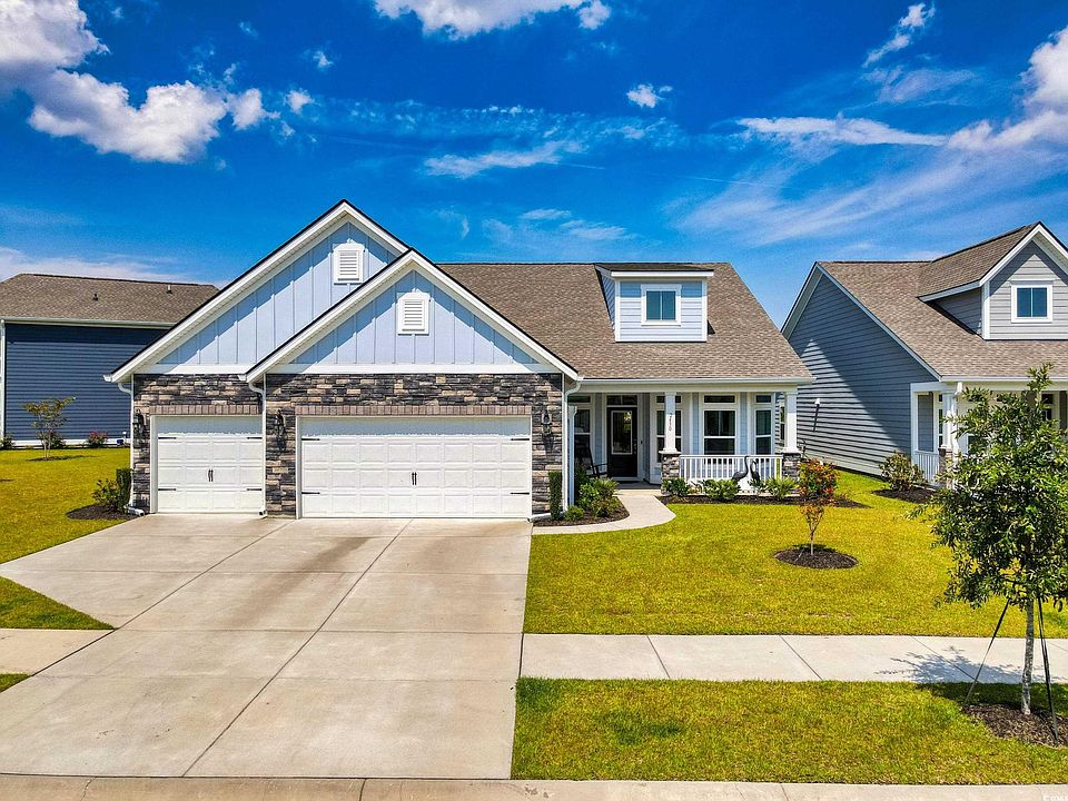 Discover coastal luxury in the sought-after Belle Harbor neighborhood within Market Common. Only minutes away from the beach, this exceptional home seamlessly blends meticulous design with enchanting living, situated on a spacious .25 acre lot that offers soothing pond views.  The heart of the home, the gourmet kitchen, features a built-in gas cook surface, microwave/convection oven, electric conventional/convection oven, and a designer vent hood with exterior ventilation. A dishwasher and all GE Profile appliances complete this culinary haven. Upgraded kitchen hardware, pull-out lower shelves, and granite counter tops exemplify attention to detail. A counter top garbage disposal control button adds convenience. A spacious corner kitchen pantry caters to organizational needs, while upgraded cabinets elevate aesthetics.  Luxury extends to the bathrooms with upgraded hardware. Granite counter tops span throughout, exuding timeless elegance. The master bath is generously proportioned, offering large dual sinks, ample cabinet space, and an expansive walk-in closet, in addition to the second walk-in closet within the master bedroom. Conveniently located nearby is a double-sized linen closet for added storage.  A white trellis at the front entry adds a touch of sophistication. Upgraded flooring in the family room, dining room, kitchen, den, and hallway exudes luxury. The 'Ring' security ensures peace of mind, and window treatments are included. A natural gas fireplace with a blower infuses warmth and ambiance into the living space. Designer chandeliers and ceiling fans grace every corner, creating an atmosphere of refined living. All rooms feature dimmer rocker light switches, and the ceiling fans have been wired for both speed and light control, allowing you to create the perfect ambiance for every occasion. The den boasts extended bay windows that invite abundant natural light and frame the verdant surroundings. The 3-car garage's interior has been tastefully painted.  The meticulously landscaped surroundings feature palm plants, crepe myrtle trees, and other carefully chosen elements. A stone facade graces the front, showcasing exceptional craftsmanship. Maintaining the lush landscape is effortless with an irrigation system managed by a 'Rainbird' control. Effortlessly integrate indoor and outdoor living with the convenience of a natural gas stub, perfect for alfresco BBQs on the spacious covered patio. Inside, a Rinnai on-demand hot water system provides both comfort and energy efficiency. Storm/hurricane screens provide security during inclement weather, while the Moen 'Flo' system ensures protection from water leaks. Rain gutters/downspouts with pop-ups preserve the home's exterior, and an extended backyard poured concrete patio (22 x 16) offers a charming retreat overlooking the tranquil pond. Please note that exclusions apply: Refrigerator, washer, and dryer do not convey.   This residence transcends mere housing; it's a testament to elevated living. Don't miss your chance to own this masterpiece in one of Myrtle Beach's most sought-after communities Market Common.   Living here you will uncover the allure of Myrtle Beach, SC's Market Common District! This charming enclave offers a delightful blend of coastal elegance and modern amenities. Wander through picturesque streets adorned with lush trees and charming boutiques, where you can find one-of-a-kind treasures and stylish fashion. Indulge in the culinary delights of gourmet restaurants, serving up flavors that cater to every palate. Whether you're enjoying a leisurely meal, exploring boutique shops, or savoring a scenic stroll, Market Common is the perfect fusion of coastal relaxation and vibrant entertainment. Come and experience the best of Myrtle Beach's Market Common District!