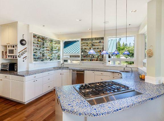 Extraordinary waterfront retreat on Marrowstone Island. Every detail planned to perfection from the Madrone hardwood floors to the railing made by local artists. Gourmet kitchen w/terrazzo counters, sub-zero fridge & high end appliances. Master suite w/ jetted mandarin soaking tub & double shower. Covered 48' deck w/exquisite Mt & water views. 2 fully fenced lots on 1.74 acres w/garden, fruit trees, irrigation system, guest house, art studio, green house & shop complete this masterpiece.