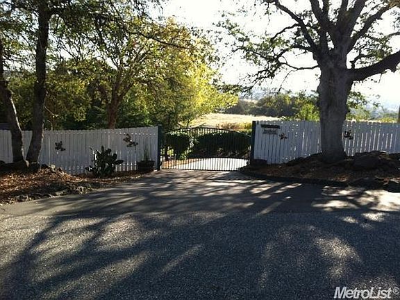 Country Property in a great private location but minutes to Hwy 49 or Hwy 80. Property is fenced and crossfenced, Riding arena, horse pen, single st home with 3 bedroom, 2.5 baths. Beautiful rolling property with fully irrigated pastures orchard w lots of fruit trees. Beautiful sloping views, paved gated entrance, formal living and dining, open w lots of light coming in from all directions. Multiple sliding glass doors with a covered patio looking into the view.A pleasure to show.