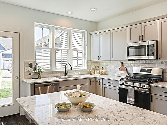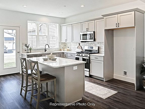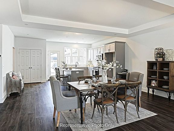 UNDER CONSTRUCTION: This 2-story home with a sleek profile includes a 1-car, rear load garage with mudroom entry, and a covered patio for outdoor living. The first floor boasts 9' ceilings and vinyl plank flooring throughout. The kitchen, featuring stainless steel appliances, attractive cabinetry, and quartz countertops with tile backsplash, opens to the spacious dining area and sunny living room with a modern electric fireplace design with a box beam mantel. All 3 bedrooms, 2 full bathrooms, and a convenient laundry room are located on the second floor. The owner's suite features an expansive closet and the private bathroom has a double bowl vanity and 5' shower.
