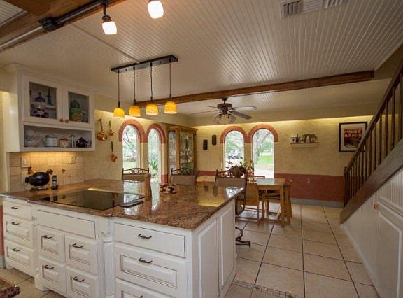 Gorgeous home unique in character situated on a beautiful 10.84+/- acres! Spacious 5 bedroom, 3 bath lovely home. Lovely kitchen with induction cooktop, stainless appliances, furniture style cabinetry with an island. Living room with stone fireplace. Comes with a guest house and swimming pool, pergola and firepit, 3 car attached garage and 3 car carport. 2 barns and stalls, workshop, security system. Large oak tree filled acreage and a very peaceful area to live!