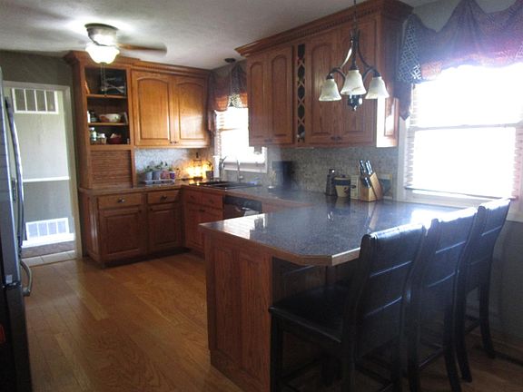 Attractive home on Desirable Street. Custom Kitchen. 3large bedrooms on the main. Basement has 2 separate family rooms, Plus an office area & 3/4 Bath. Lots of Storage. Covered patio, storage building & a large pond. It's the perfect family home! Shows beautifully. Hot Tub is reserved.