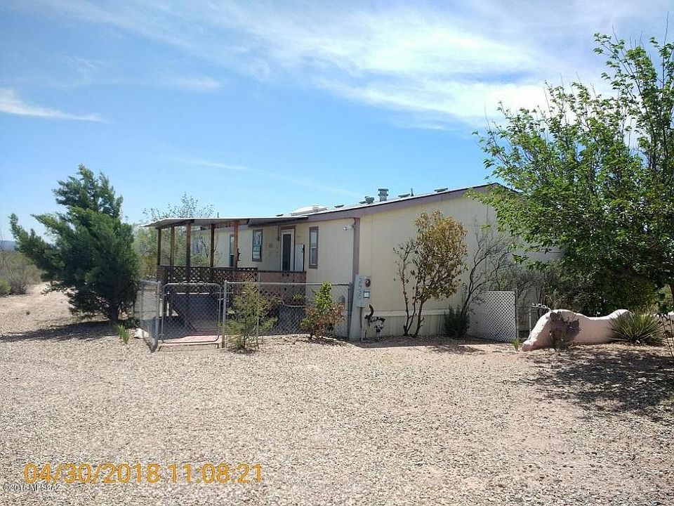 Secluded and peaceful property that has been loved in the past. 10+ acres and a private well, RU4 zoning requires minimum 5 acre lots (potential for lot split here). Enjoy privacy and country living in this manufactured home in the greenbelt near the San Pedro River in Huachuca City, AZ. This 3 bedroom, 2 bathroom has a den, a screened in back porch where you can sit and enjoy the nature views. Enjoy trees, and shrubs on the 10 acre lot located on the edge of a greenbelt. NOT in a designated flood zone. May qualify for FHA financing. Seller to cover cost of septic certification. Inspections completed at buyer's expense, seller will not activate electricity, well water, propane heat. REO listing, sold as is. About 1 hour drive to Tucson, AZ. Less than 1 mile of unpaved road to property.