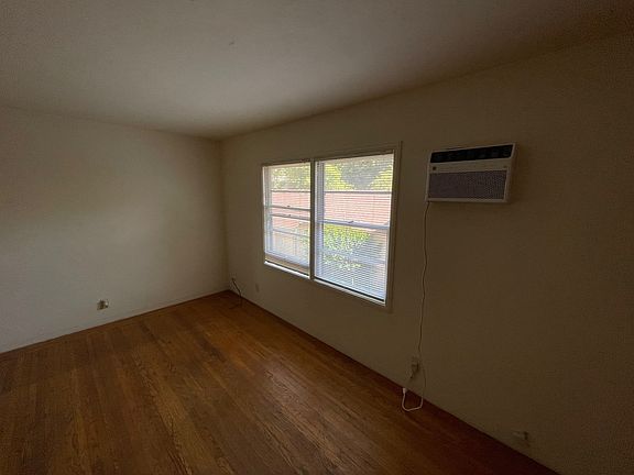 Shared courtyardHardwood flooringGas stoveCeiling fan in bedroomWall heating and air