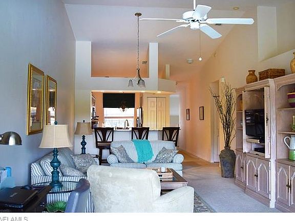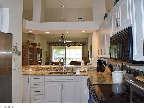 Beautiful immaculately maintained and updated 2nd floor "Garden" Home unit overlooking serene southern exposure lake and water fountain! Light and bright with soaring ceilings. Updated kitchen includes new granite counter tops, cabinets and lighting. Stainless steel appliances. New carpets, lighting, fans, toilets and more. New A/C March 2016. Detached carport. Community offers outstanding amenities: pool/clubhouse with fitness center. Walking paths. Centrally located in North Naples. Walk to restaurants, stores and market. Make plans to see this today!