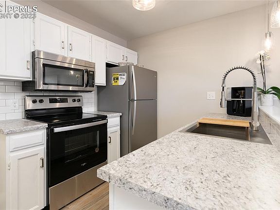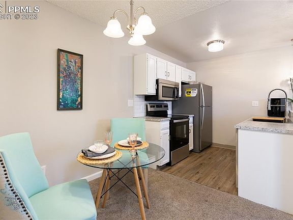 Come check out this newly renovated condo in the 55+ Community of Heritage Park! Open & Bright layout with views of Pikes Peak! Stainless steel kitchen appliances including brand new Dishwasher! A dishwasher is a unique feature for this complex as it is one of the only units with one installed. Spacious laundry room with shelving adds extra space for linens. Washer & Dryer are included. Beautifully kept-up courtyard. Clubhouse is available for rent with its own kitchen and amenities. HOA fees include all utilities except electricity & storm water. Easy access to major roads including Union & Circle. This complex is also conveniently located along the city bus line with a bus stop located directly in front of the complex. Close to shops, schools, grocery stores, and restaurants.