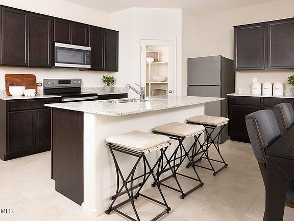 This highly sought-after single-story Lantana floor plan features 4 bedrooms, 2 baths, and a den. As a former sales model, it will be fully ready in June for move in. Enjoy added privacy with no backyard neighbor. This home includes stainless steel appliances, a refrigerator, washer/dryer, front yard landscaping, granite countertops in the kitchen, tile in all the right places, and a spacious covered patio. Built with top-tier energy efficiency, this home is a must-see.