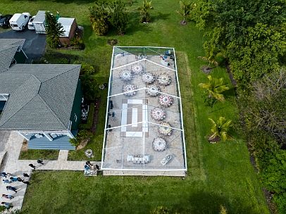 Welcome to Saint Patrick Palace, your own private resort in the quaint town of Davie, Florida, where old-world charm meets modern amenities! Whether you're seeking a luxury getaway or a stunning venue for your special occasion, Saint Patrick Palace offers the perfect setting. Custom packages are available for combined overnight and event use. RENTAL OPTIONS: * Overnight stays start at $2,500 per night, with rates varying based on season, guest count, and space usage. * Event rentals start at $4,000, depending on the type, size, and scope of your gathering. Set on five acres of beautifully landscaped and securely gated grounds, Saint Patrick Palace beckons with an air of exclusivity coveted by celebrities and executives alike. Tailored for multi-generational families, retreats, and unforgettable gatherings, the estate features a fully furnished main residence, a charming guest cottage, a heated saltwater pool with a travertine-tiled sundeck, and so much more. Enjoy breathtaking views of the lush grounds complete with a serene pond and fountain from the wrap-around veranda and upstairs balconies. It's the ideal backdrop for intimate weddings, milestone celebrations, or upscale events. Conveniently located just minutes from the airport, and close to both Fort Lauderdale and Miami, this tropical oasis offers privacy, elegance, and easy access to South Florida's world-class beaches and attractions. ESTATE FEATURES Saint Patrick Palace offers a thoughtfully curated blend of luxury, comfort, and entertainment across five gated acres. Key features include: * Gated entry on five acres of private, landscaped grounds * Private pond with fountain and dock * Expansive 80' x 40' paved outdoor area perfect for events * Air-conditioned three-car garage and spacious driveway * Two-story guest house with 1 bedroom and 2 bathrooms * Main residence with 4 bedrooms and 4 bathrooms across two stories * Grand 24-foot foyer with sweeping staircase * Ten-foot ceilings and hardwood floors throughout * Spacious master suite with private living room * Gourmet chef's kitchen with marble countertops, 6-burner gas stove, and double ovens * Wrap-around veranda and multiple private balconies * Heated saltwater pool with travertine-tiled sundeck * Smart home technology for lighting, audio, video, and security * Samsung Smart TVs throughout the property * Pet-friendly accommodations * Game room with a billiards table * PlayStation 5 with two controllers * Fast, premium Wi-Fi throughout the estate INSIDE SAINT PATRICK PALACE Saint Patrick Palace exudes the grandeur of a turn-of-the-century estate, seamlessly blended with today's most desirable conveniences. Designed with both elegance and functionality in mind, the property is equipped with integrated smart home technology, including smart lighting, audio, video, and a comprehensive security system, as well as Samsung Smart TVs and premium high-speed Wi-Fi throughout. Step into the stunning 24-foot foyer, and you'll immediately sense the endless possibilities of your stay. Ten-foot ceilings, rich hardwood floors, and two fireplaces enhance the sense of timeless sophistication that defines this estate. The chef's kitchen is a true centerpiece, featuring marble countertops, a six-burner gas stove, double ovens, and all the culinary tools needed to prepare and enjoy gourmet meals. Dine in style in the formal dining room, relax in two spacious living areas with plush sectional sofas and 75" Smart TVs, or retreat to the expansive master suite complete with a private living room and luxurious bath. Whether you're hosting a gathering or enjoying a quiet night in, the entertainment room offers fun for all ages, with a billiards table, game selection, and more. For work or study, the dedicated office with Ethernet connectivity provides a quiet, productive space. A large air-conditioned three-car garage and ample driveway offer convenient on-site parking for you and your guests. The estate is thoughtfully designed to provide both privacy and flexibility, with the Kong Vacation Homes property management team on hand to ensure your stay is exceptional from arrival to departure DETAILS BY ROOM: The Living Areas - The estate features two beautifully appointed living spaces, each furnished with plush sectional sofas and 75" Samsung Smart TVs. These inviting spaces seamlessly blend classic design elements with modern convenience, making them the perfect places to unwind, entertain, or simply spend quality time with loved ones. Formal Dining Room With a majestic chandelier and a table that seats up to twelve people, this elegant dining room is the perfect spot to enjoy a gourmet meal. The Kitchen The heart of the estate, this chef's kitchen is a bright and welcoming space with marble countertops and timeless design touches. Fully equipped with pots, pans, dishes, silverware, and glasses, you will find everything you need to prepare meals, including a six-burner gas stove and double ovens. Keurig coffee machine and griddle are just a few additional pieces that make this house feel like home. The Entertainment Room - Furnished with a billiards table, card tables, a 75" Samsung Smart TV, bar, a selection of games, a gaming console, and more card tables, fun awaits you here! The Rooms - The main residence at Saint Patrick Palace features four spacious bedrooms, thoughtfully arranged to accommodate families and groups with comfort and style. You'll find a total of three king beds and two queen beds, each dressed in crisp white linens, light comforters, and equipped with a smart alarm clock for added convenience. The grand master suite offers a private living room and a luxurious master bathroom, providing a peaceful retreat within the estate. Two of the upstairs bedrooms share a guest bathroom, perfect for family or close friends. The remaining bedrooms each feature their own private en suite bathrooms for added privacy. A full guest bathroom, located downstairs near the living room, offers add