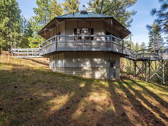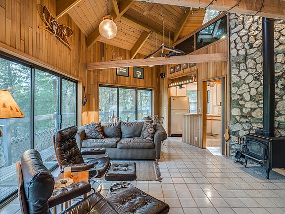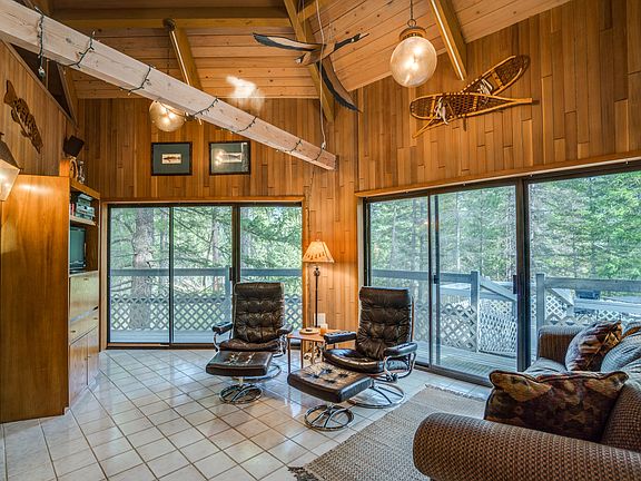 Quite possibly the cutest little cabin you've seen! This unique octagon-shaped getaway features exposed beams, vaulted ceilings, cedar finishes throughout, a cozy wood stove, central heating, and can include all furniture for a turn-key purchase! One bedroom, one bath on the main floor, plus a large open loft upstairs used as bedroom #2, and a full unfinished daylight basement that could be finished off for additional living space. Nice deck for relaxing outdoors and beautiful views of the mountains. Access to groomed snowmobile trails just down the street, plus centrally located close to Lake Wenatchee, Fish Lake, Stevens Pass, and Leavenworth.