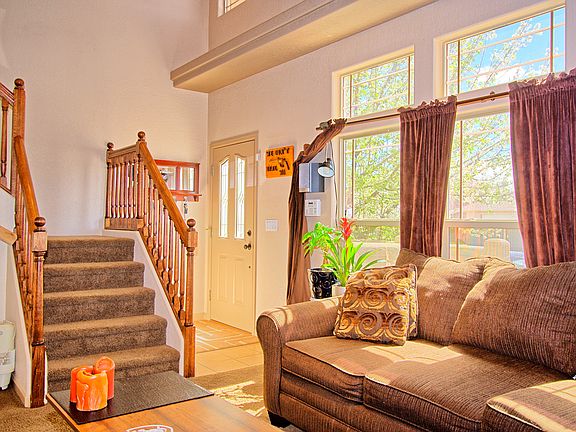 Beautiful stucco home with 4 bedrooms, 3 bath in highly desirable Spanish Trails neighborhood that backs to Grand Junctionââ¬â¢s biggest park! Plenty of room for your family on a quiet cul-de-sac. Large master bedroom and mstr bath on the main level. Wonderful natural light throughout! Plenty of closet space in each nice sized bedroom. Open floor plan with 2 story living room. Stay comfortably cool during summers with refrigerated air conditioning.
