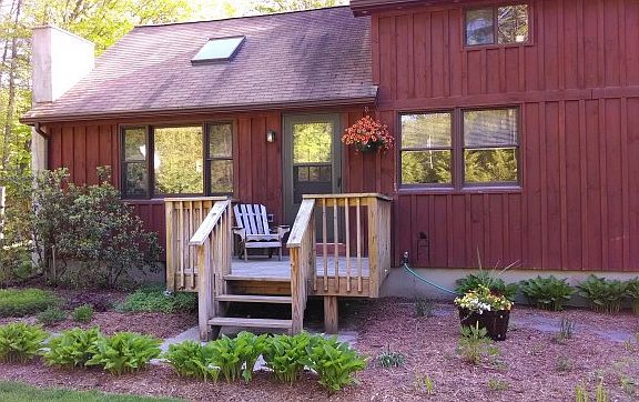Cozy country chalet styled home with fenced yard, large deck, and detached 2+ car garage plus shed! Open floor plan w/cathedral ceiling great room which includes kit., dining & LR w/woodstove. 1st floor BR & full BA plus HOT TUB room. Upstairs MBR w/balcony & 1/2 bath. Wonderful open feel. Walk-out full basement w/laundry. Hubbardton Forge lights! Just charming inside & out. Motivated sellers!