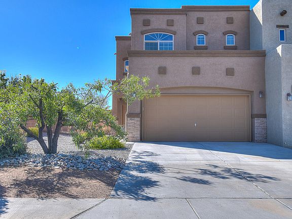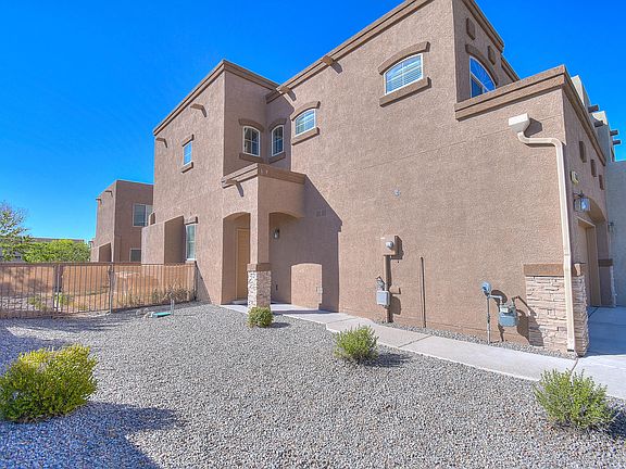 This well cared for DR Horton town home has an open floor plan, perfect for entertaining with half bath located off kitchen. Two large Master Suites with their own full bathrooms and large walk-in closets. Located on an oversized corner lot with side yard access and fenced back yard. This home is in the desirable Astante gated Community, with nearby amenities and a half block away half block from the large, beautiful, well maintained Cabezon Park. There is a very spacious two car garage. in this well maintained community neighborhood.