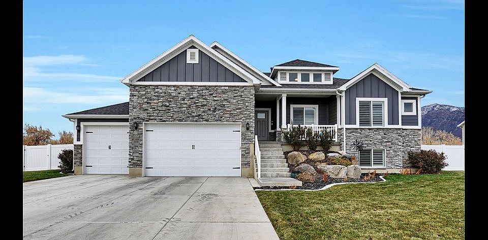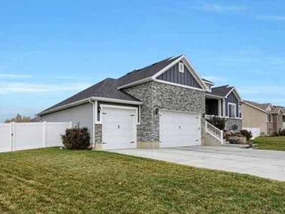 Beautiful open concept rambler in Farr West, with south facing exposure. Amazing mountain views from covered Trex deck in the back. Abundant natural light, plantation shutters throughout. Large great room with vaulted ceiling. Beautiful granite countertops in the kitchen and bathrooms, staggered cabinets. Great master bedroom, master bath features oversized shower with two heads, double sinks and large walk-in closet. Large jetted tub in hall bath. Open floor plan in basement offers family room with electric fire place, in-wall aquarium, kitchenette, washer dryer hook ups, and walkout basement. Large finished 4 car garage with epoxy floor, utility sink and man door to back yard. New matching 10X14 shed in rear of property great to house toys and tools.. square footage figures are provided as a courtesy estimate and were obtained by county records. buyer is advised to obtain independent measurement.