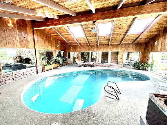 Views of the City and Mid-Century Modern at it's FINEST! Updated for livability, yet vintage feel throughout. Indoor kidney-shaped pool, hot tub, floor to ceiling dramatic stone fireplace, 2 decks to view the City below and hills beyond. Updated Owners Suite on Main w/2 walk-in closets, huge family room w/fireplace downstairs, office & wine cellar. Andersen windows throughout. New plumbing, electric, furnace, AC , paint, roof, flooring, windows, light fixtures..on and on. DON'T MISS THIS ONE!