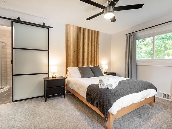 This Oak Park ranch, renovated in 2022, features four beautiful bedrooms (each with its own smart TV) including a primary bedroom / bathroom suite. The kitchen was completely re-done and includes a gas range and range hood, quartz countertops, custom wood shelving, and stainless steel appliances. Not to be outdone by the main floor, our basement is the secret highlight of the house with a massive entertaining area along with a work area featuring two full standing-desk, dual-monitor setups with docks, keyboards, mouses, and comfy office chairs! And to top it all off, relax or entertain in our expansive fully-fenced back yard where we have a propane grill, a ~300 SF deck, string lights, a fire pit, and plenty of seating! Finally, we are a quick 10-minute drive to the Ferndale/Royal Oak areas and 15 - 20 mins from Birmingham (in one direction) and downtown Detroit and all of its amenities in the other! With plenty of off-street parking, including space for a couple cars inside our locked gate, and also ample free street parking, this is the perfect spot for any gathering or extended getaway!