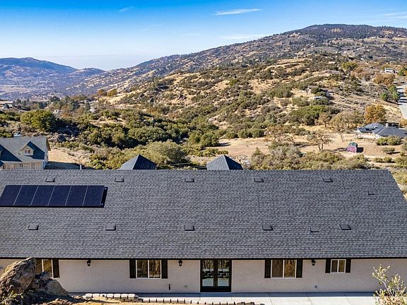 New construction! This home is open concept, 2100 sqft, single level with many up grades. Custom soft close white shaker cabinetry, tiled showers, floating water proof vinyl plank floors in main living area and bathrooms, carpet in bedrooms. Electric fire place, 9' ceilings, large pantry, paid off solar system and high efficiency tankless water heater, Quartz throughout, black stainless steal appliances with a 36inch Zline oven. Home features a oversized 3 car garage with approximately 1,050sqft that includes a half bath and insulated garage doors. Perfectly situated on a corner, 3.25 acre lot, that is positioned where no one can build next to you. Has plenty of room for RV parking and perhaps a future shop. Low maintenance yard with a 270 degree panoramic views of Bear Valley, the San Joaquin Valley and the High Sierra. A home where you can enjoy gorgeous sunset view's.Come take a look!