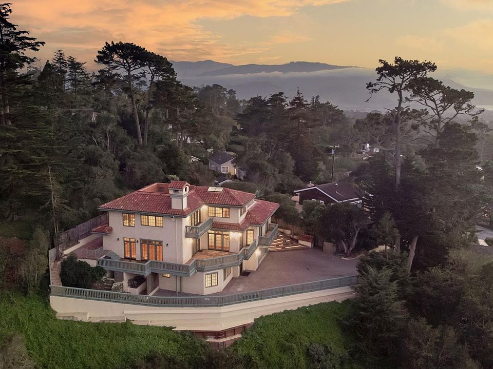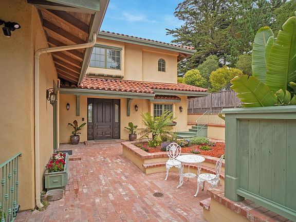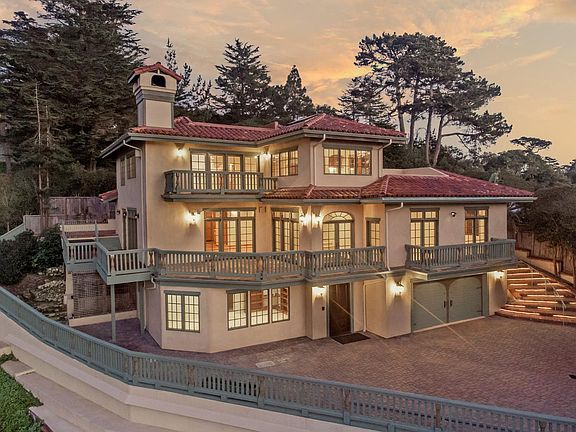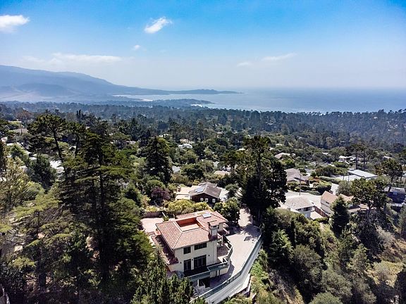 Welcome home to this romantic Spanish Hacienda located in Carmel Woods with stunning 180 degree views of the ocean and Del Monte Forest. Crossing through the gated entrance you will notice a picturesque framing of Point Lobos as the spacious paved driveway transports you to another world of luxurious serenity. Notable features include beautiful hardwood floors, a gourmet kitchen, two Carmel stone fireplaces, a 2-car garage, and 3 comfortable bedrooms including an expansive primary bedroom suite with its own balcony and ocean view deck. The home also includes a roomy downstairs area perfect for a family/media/game room or additional suite with a separate entrance. As a big plus, the property has its own well and onsite water storage. Enjoy breathtaking sunsets from multiple balconies and a rooftop deck, or mosey downtown for world-class dining, shopping, and some of the most gorgeous beaches in the world. Your Carmel ocean view paradise awaits at 24300 San Juan Road.
