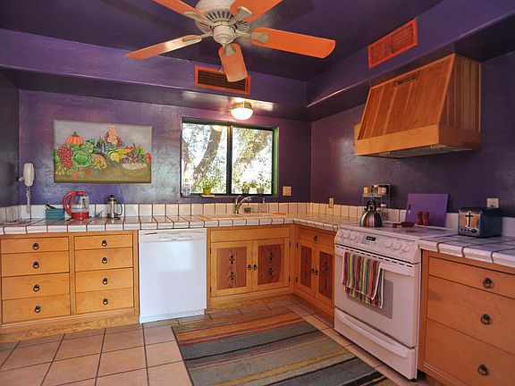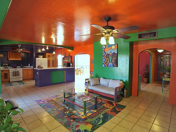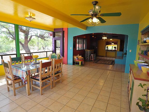 ARTISTIC FLARE AND VIBRANT COLORS! This Peaceful and private home sits on almost 4 acres. Large living areas, tile flooring, cozy fireplace in family room, ceiling fans through out and Arizona room perfect for relaxing. Huge open kitchen with Corian counters, custom pine cabinetry plenty of storage and energy star appliances. Large bedrooms and closets. Main bathroom has Jacuzzi style tub. Master bedroom, tiled shower, walk in closet and sliding doors that lead you to the back patio. Large laundry/utility room also with plenty of storage and counter space. Full solar power and private well. Separate 1bd/1bth guest house and 1000sf permitted workshop/studio w/220V with separate cooling. So many possibilities and plenty of room for your RV or toys!