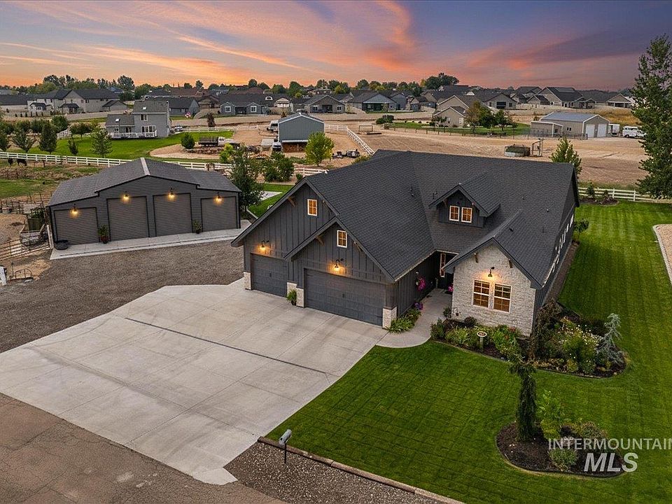 This beautiful custom built home by Maddyn Homes on over 2 acres, in Middleton on a quiet dead end street cannot be beat! Property is set with meticulously manicured landscaping, raised garden boxes, fruit trees, berry bushes, fully fenced pasture divided into thirds, covered horse stalls, 2,000sqft shop with electricity, 2 10'x10' RV doors & 1 12'x10' RV door; fully capable of holding all your feed & toys! Inside your new home you'll find gorgeous custom details from the engineered hard wood & tile flooring. Cathedral ceiling with wood beams in the family room, pellet stove with grand floor to ceiling stone work, fantastic lighting throughout & unbeatable craftsmanship. Fully insulated spacious 3 car attached garage with epoxy flooring with enough room for all your extra tools you don't want out in the shop. Come and enjoy the hard to beat Idaho sunsets & some peace and quiet on your expansive covered patio at your new homestead on Wanda Way! Check out the features list under the docs tab too! *No sign in yard.