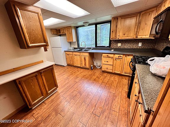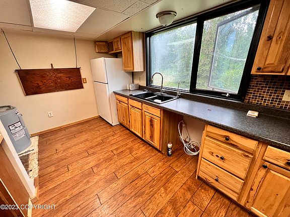 Willow Creek just across the road! Maintained Road access year round! 1 bathroom/3 bedroom PLUS office space Fabulous price point for quick sale! Sellers are licensed Realtors in Alaska. PAVED PARKING - NO MORE MUD PARKING!! Just a few years back, a large gravel pad to the left of the home with a beautiful grass lawn to the right of the home. This could definitely be reclaimed with a little TLC to have your lovely gravel outdoor living space. Covered wood shed, campfire/fire pit area that has some privacy fencing, wood burning sauna house, & greenhouse! Larger graveled area in the back includes storage shed and large firepit with additional driveway type access. Quite a bit of "debris/personal items" have been left in the yard. Wonderful vegetation between home and the end of the road. Access to trail system from your door! Septic system is above ground due to the property being in a flood zone, tested 2022 with passing results. Great equity builder! Great rental! Or live in full time? Could also be great recreation location - everything Alaska is right here! River fishing access, trails all around! Needs some TLC for sure. Brand new egress windows have recently been replaced in the bedrooms and an additional window added in the living space. Install needs some finishing touches & needs to be painted. Interior of home smells of dog. Missing the railing at the very top of the stairs. Some of the windows are original. Wood stove can easily heat the entire house, PLUS you have oil burning "toyo" type stove. Spacious front entry way and wrap around deck! Lots of light throughout the entire home. 3 bedrooms and office space upstairs. Main bedroom boasts cathedral ceiling, ceiling fan, wood post with burl, AND walk in closet with wonderful built ins! Could easily add a second closet by reconfiguring the office which is between the main bedroom and the two additional rooms. Foundation is concrete piers, could be lendable with recreational financing.
