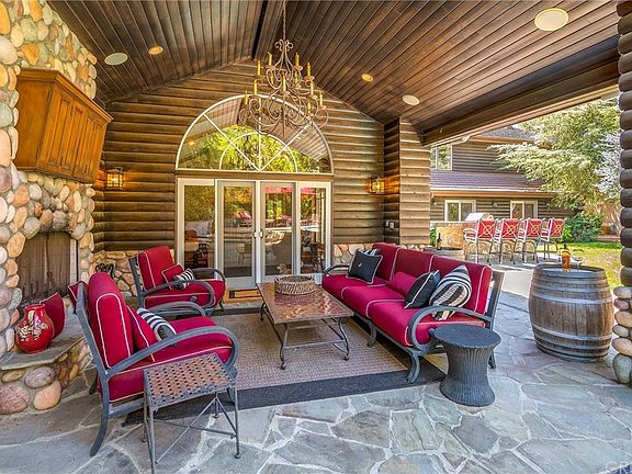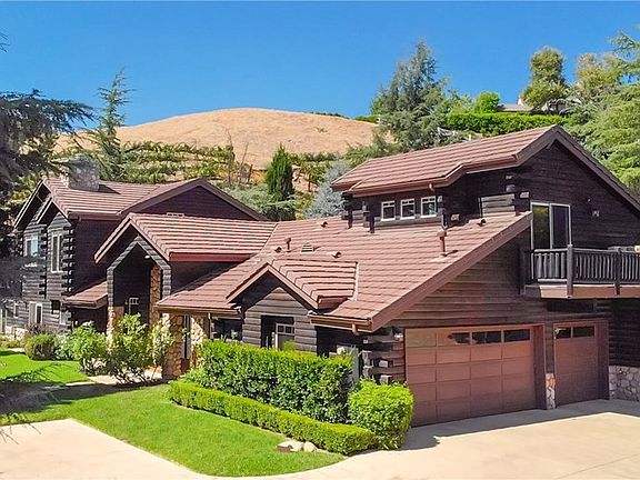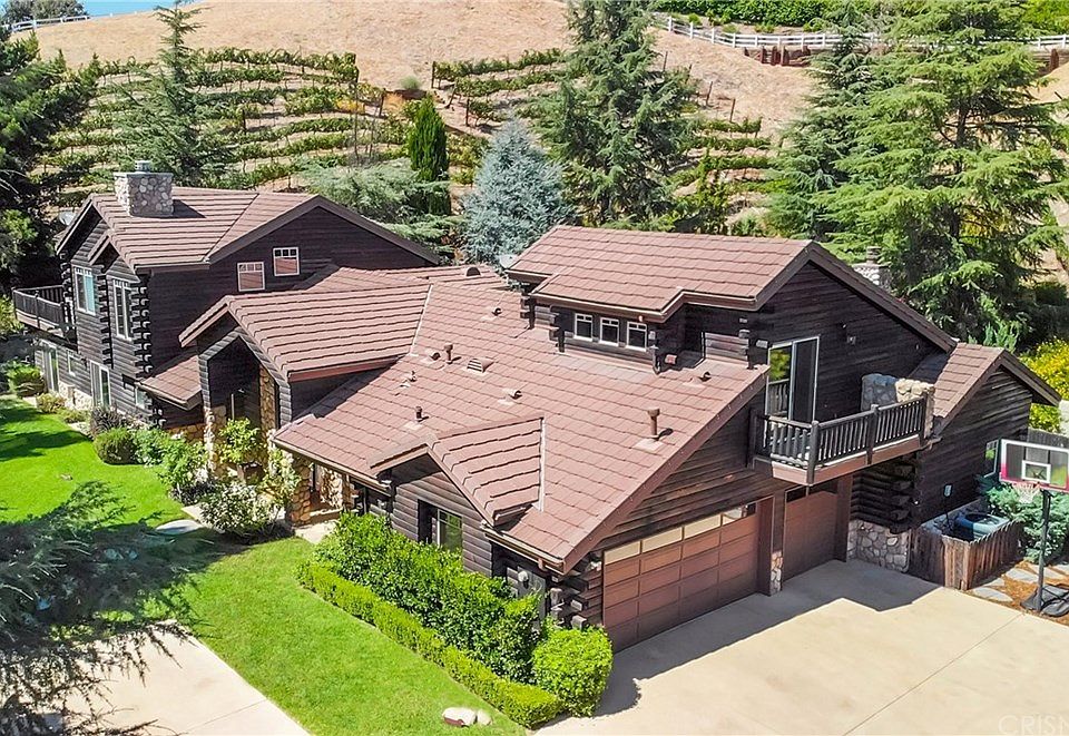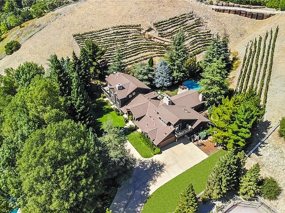 Stunning Lake Tahoe-Style Estate in Hidden Hills. This breathtaking home is tucked away on a private lot with a gorgeous vineyard as a backdrop. Enter up the private drive and be mesmerized by the unparalleled style and artistry of this incredible estate. Surrounded by natural scenic beauty and enhanced with rich landscape & hardscape, this fabulous property is one-of-a-kind! Inside youâll find a grand entry, custom stone & wood floors, walls of glass, and designer detail throughout. Features include an impressive kitchen designed for gourmet cooking, with a large center island, Profesional Series Wolf Range, Sub-Zero Refrigerator, walk-in pantry, and stunning stone countertops. The formal dining room and stately family room are both graced by a floor-to-ceiling magnificent River Rock fireplace. Downstairs features four generous-size bedrooms, and upstairs youâll find the most enchanting master retreat. The master retreat features a separate office/loft with hand-crafted built-in bookshelves, elegant master suite with fireplace and views of the mountains, spa-style master bath and walk-in closets. There is also a dedicated play/bonus room downstairs with a full bath and sauna. If you work at home and need a studio, youâre in luck! This home features an enormous upstairs studio with a private entrance. Incredible backyard offers covered loggia for dining, entertainers BBQ Pavillion, spectacular pool & spa, mature landscape, and an income-producing wine vineyard!