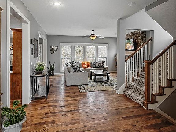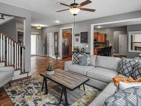 WHY BUILD NEW?? MOVE RIGHT IN TO THIS BEAUTIFUL 4 BEDROOM HOME ON PRIVATE TREED PREMIUM LOT! Kitchen is loaded with granite countertops, wood flooring, custom cabinets, farmhouse sink, backsplash, island and stainless appliances. Built in desk and mud area off of kitchen. Large family room with stunning wood flooring and stone gas fireplace with wall of windows to view your treed lot. Master bedroom with beautiful ceiling inserts and walk in closet. GREAT PATIO SPACE and covered deck (ENTERTAINMENT PARADISE)!!