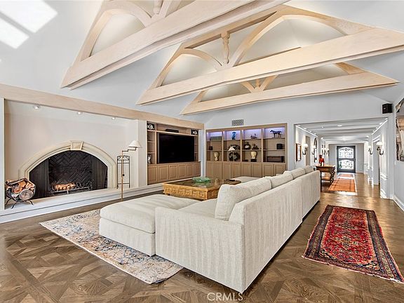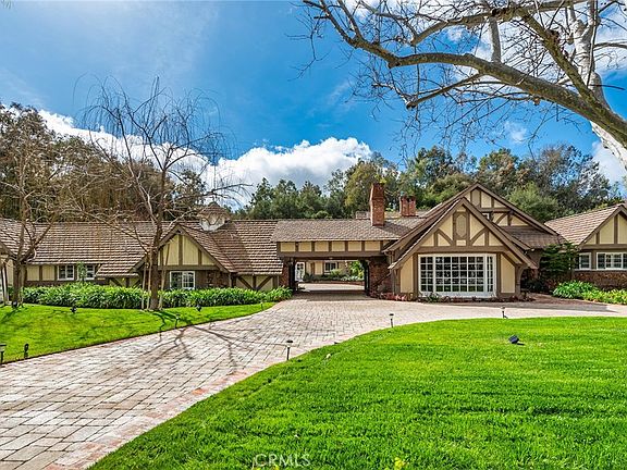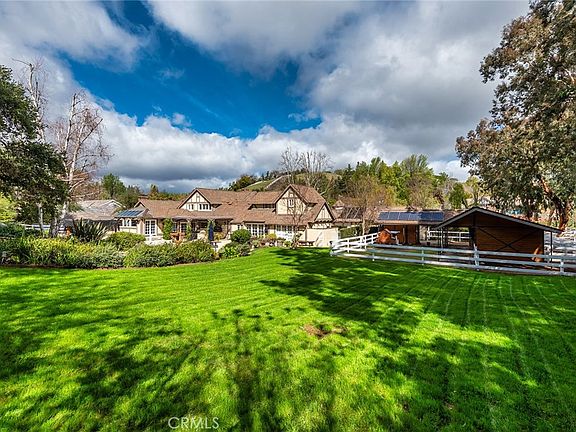 Nestled on a quiet cul-de-sac in the guard gated community of Hidden Hills, this charming, fully furnished, approximate 6,500 square-foot estate sits on a very private and lushly landscaped 1.48-acre lot. Nicely upgraded throughout, this mostly one story home features a main house and a guest house with a total of 7 bedrooms and 7 baths. The elegant primary suite encompasses the upstairs, offering wonderful privacy, a light-filled bathroom with glass encased steam shower, soaking tub, and a generous walk-in closet with center island. On the main level you'll find the beautiful, center island kitchen with Viking appliances, an adjoining breakfast room, both flowing into the spacious family room with fireplace & wet bar, plus a sunny formal dining room, a 248 bottle wine cellar, cozy home theater, and your own gym! The guest house includes a kitchen, family area, large game room with pool table, and 2 bedrooms. The very private grounds feature a sparkling, solar heated pool & spa with waterfalls, a covered patio complete with barbecue center, a Koi pond, a large grass lawn surrounded by mature trees, an equestrian barn with a turnout area, a chicken coop with happy residents, and a circular driveway, bordered by a rose garden. You can also enjoy the community amenities such as direct access to 25 miles of scenic equestrian & pedestrian trails, a private community park, tennis, pickleball, and sports courts, barbecue area, and more. Offering a blend of traditional charm and modern amenities, this charming home is available for occupancy as of January 17th.