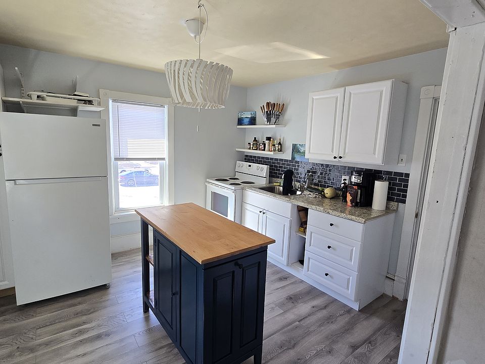 Newly renovated 3 bedroom apartment on the second floor of a house. New kitchen with open floor plan to the living room. New flooring, newly painted, with updated bathroom. 2 bedrooms located on the 3rd floor of this home. Renter pays flat $250/mo fee for all utilities including: water, sewage, electric, gas, and garbage.
