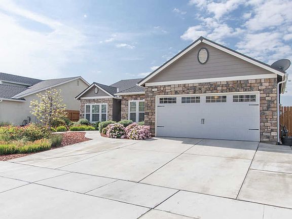 This home was built by Lennar Homes and is located in southeast Tulare. An attractive exterior design and drought tolerant landscaping give it great curb appeal. The open and flowing floor plan has many windows, vaulted ceiling, and is light and airy. The kitchen opens up to the great room and the front room can be a second living area, den or formal dining room. The kitchen features granite counters, lots of cabinetry, pantry, and stainless appliances, including the refrigerator. The sunny dining area has a slider out to the covered patio. There are four bedrooms, one in front, two on the side, and the master bedroom suite is in the back of the home. It features a bank of windows looking out to the back yard. The master bath has a large tile shower, separate soaking tub, and granite counters at the vanity. The home is in beautiful condition and has two inch blinds throughout. The home also has solar. See last two pictures for rules of entry.